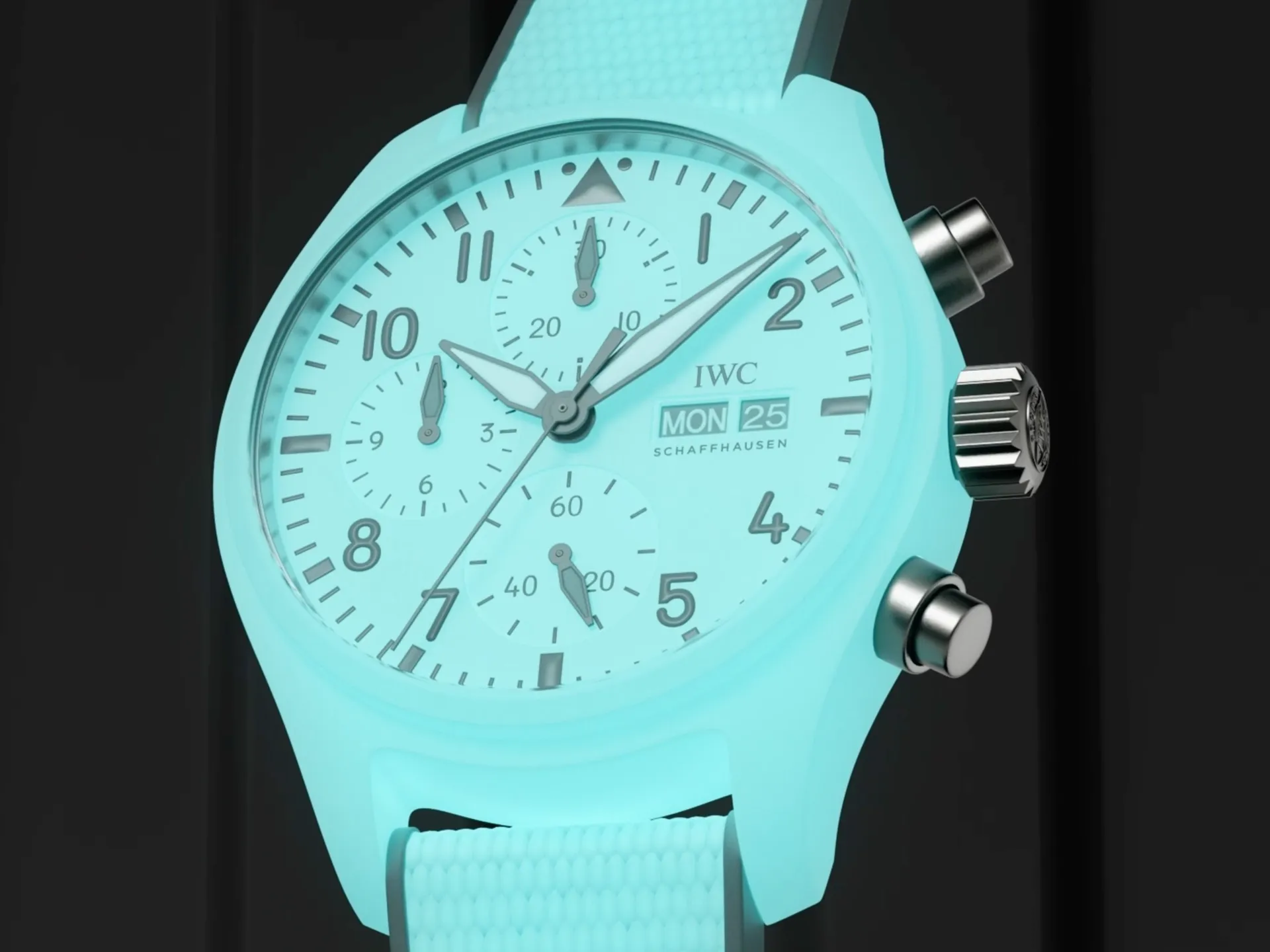 WIRED ha parlato con Lorenz Brunner, capo del dipartimento di ricerca e innovazione di IWC, per scoprire cosa lo rende così speciale. “Un orologio concettuale ci dà l’opportunità di testare il mercato”, dice Brunner. “E per essere onesti, lavoro con IWC da 12 anni e non ho mai visto niente del genere.” Non siamo nuovi a questo genere di trucchi da festa, ma quel che la Maison ha fatto è stato ingegnerizzare l’effetto altamente instagrammabile, trasformando così uno specchietto per le allodole in un pezzo di tecnologia all’avanguardia. Unendo due materiali ben noti alle case produttrici di orologi, quale la polvere di zirconia e la polvere di SuperLuminova, hanno ottenuto un nuovo materiale, brevettato da IWC come “Ceralume”. Dopo mesi di tentativi ed errori, il risultato finale, ottenuto lavorando con lo stesso fornitore specializzato che crea le casse in ceramica esistenti di IWC, è stato un rapporto che ha trovato “l’equilibrio ottimale tra proprietà meccaniche e luminosità.” Quello non era l’unico ostacolo da superare, però. Mentre le ceramiche ossidiche standard sono sinterizzate in un’atmosfera normale e ricca di ossigeno, si è scoperto che in quelle condizioni il Super-LumiNova si sarebbe degradato: aveva bisogno di essere cotto in una miscela speciale di gas inerti. “Questo è stato davvero impegnativo, perché non è il modo standard di sinterizzare la zirconia”, dice Brunner. “Direi che questa è stata la parte più difficile.” Dopo aver capito come realizzare la cassa e garantire un bagliore uniforme e omogeneo, il team di IWC doveva poi assicurarsi che il risultato finale fosse all’altezza degli stessi standard di durata previsti per un normale orologio in ceramica, famoso per la sua resistenza ai graffi e la durezza superficiale. Altri marchi di orologi, tra cui Bell & Ross e Zenith, hanno creato casse di orologi completamente o parzialmente luminescenti infondendo Super-LumiNova in fibra di vetro, quarzo o polimeri di carbonio. Ma nessuno aveva tentato di farlo con la ceramica fino ad ora.