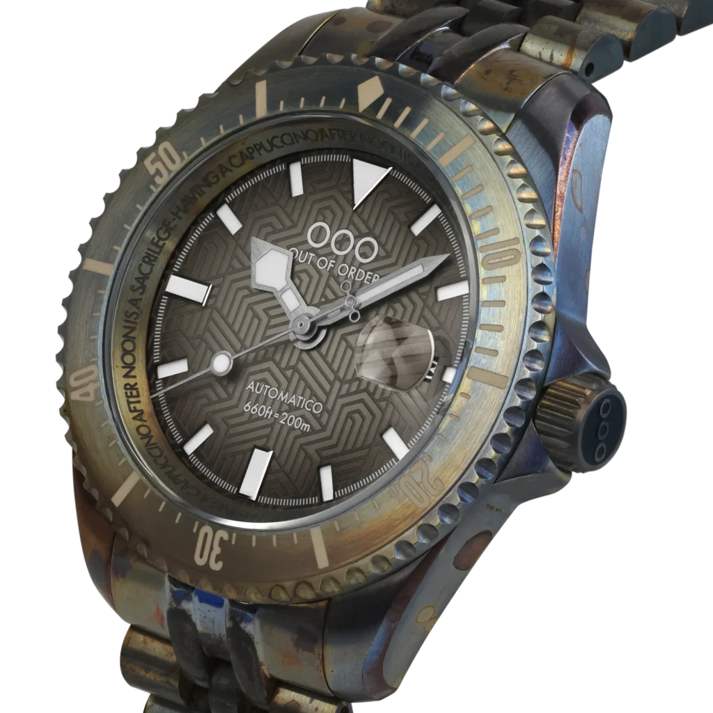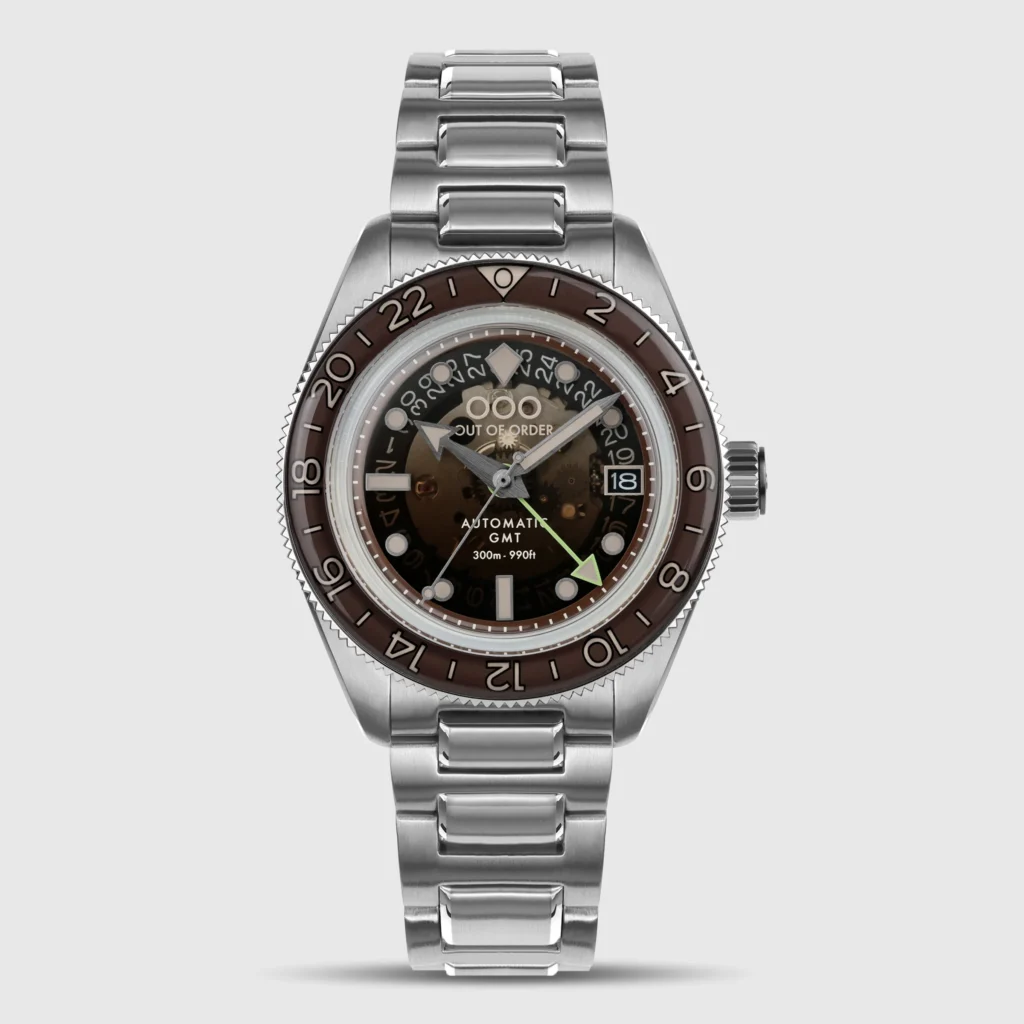 Out Of Order, marchio italiano fondato nel 2013 e noto per la sua filosofia damaged in Italy, con trattamenti invecchianti speciali, ha recentemente ampliato la collezione Shaker con il Cuba Libre Automatic GMT, un’edizione limitata di 130 esemplari che celebra il celebre cocktail caraibico con un design ispirato ai suoi colori e alla sua storia. Il quadrante sfumato, realizzato in vetro zaffiro, richiama le tonalità ambrate del rum e della cola, mentre i dettagli luminescenti evocano la freschezza del lime. Il marchio, inoltre, sempre in fermento dal punto di vista delle novità, ha appena introdotto due nuove versioni del Diverissimo Azteco, la Dark Grey con una colorazione sobria e quasi monocromatica, che trasforma il Diverissimo in un orologio sobrio e perfetto per un utilizzo quotidiano, e la Sand caratterizzata dall’ormai iconico trattamento ultra invecchiato di Out Of Order, che rende quest’orologio come appena uscito da un’avventura di Indiana Jones.