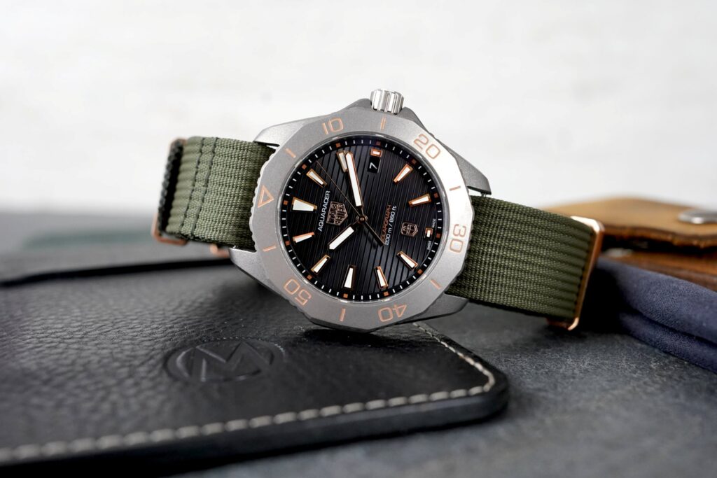 Il TAG Heuer Aquaracer Solargraph x Time+Tide “Sundowner” è un’edizione limitata di 250 esemplari, nata dalla collaborazione tra TAG Heuer e la piattaforma australiana Time+Tide. Questo orologio trae ispirazione dai paesaggi desertici australiani, combinando funzionalità avanzate con un design distintivo. La cassa da 40 mm è realizzata in titanio grado 2 con finitura sabbiata, conferendo leggerezza e resistenza. La lunetta unidirezionale a 12 lati presenta una scala dei 60 minuti con marcature in tonalità oro rosa. La corona a vite in acciaio, protetta da spallette, è decorata con il logo TAG Heuer in colore oro rosa. Il fondello in titanio massiccio è inciso con l’emblema di Time+Tide. L’orologio è resistente all’acqua fino a 200 metri. Il quadrante antracite con finitura soleil presenta le caratteristiche linee orizzontali della serie Aquaracer. Essendo semi-trasparente, permette alla luce di raggiungere il movimento sottostante, fondamentale per il funzionamento del sistema Solargraph. Gli indici trapezoidali applicati e le lancette a forma di spada sono placcati in oro rosa e dotati di inserti in Super-LumiNova per una leggibilità ottimale in condizioni di scarsa illuminazione. A ore 6 è presente il logo di Time+Tide, mentre la finestra della data si trova a ore 3. L’orologio è alimentato dal movimento al quarzo solare TH50-00, sviluppato in collaborazione con La Joux-Perret. Una carica di 40 ore di luce intensa fornisce energia sufficiente per un funzionamento continuo fino a 10 mesi. La batteria è progettata per una durata di 15 anni e dispone di una funzione di risparmio energetico che consente di prolungare ulteriormente l’autonomia. Il “Sundowner” è dotato di un cinturino NATO in tessuto color kaki, completato da una fibbia ad ardiglione e passanti in tonalità oro rosa, che si abbinano armoniosamente agli accenti del quadrante e della lunetta. Disponibile dal 18 novembre 2024, l’orologio può essere acquistato attraverso il sito Time+Tide, presso gli studi Watch Discovery di Time+Tide a Londra e Melbourne, in selezionate boutique TAG Heuer in Australia e Nuova Zelanda, nonché online su TAGHeuer.com. Il prezzo è di circa USD 3.050.