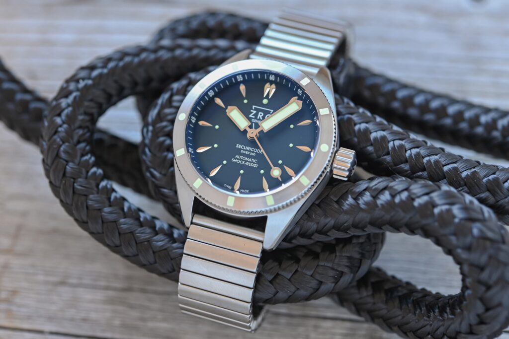 ZRC ha rilanciato il suo iconico orologio subacqueo Securicode degli anni ’60, presentando tre modelli ispirati al design originale. Le casse, con un diametro di 39 mm, sono disponibili in acciaio satinato con finitura circolare o in bronzo (in edizione limitata di 200 esemplari). I quadranti neri presentano indici applicati e lancette con inserti luminescenti per una leggibilità ottimale. Alimentati dal movimento automatico Sellita SW200-1, offrono una riserva di carica di 38 ore. La resistenza all’acqua è garantita fino a 300 metri, rendendoli adatti per immersioni professionali. I prezzi variano: 2.490 CHF per il modello in acciaio, 2.690 CHF per l’acciaio con lunetta in ceramica e 3.290 CHF per la versione in bronzo.