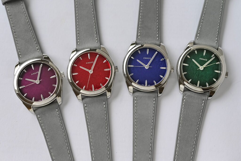 Awake, brand indipendente francese fondato nel 2019, ha lanciato la collezione Son Mài, la sua prima linea permanente, che segna una nuova direzione per il marchio. Questa collezione comprende quattro modelli con quadranti realizzati attraverso l’antica tecnica vietnamita della lacca sabbiata, arricchiti da una foglia d’argento puro. Le casse in acciaio inossidabile da 39 mm, 10,9mm di spessore e 30 metri di impermeabilità, ospitano movimenti automatici svizzeri La Joux-Perret G101, offrendo una riserva di carica di 68 ore. I quadranti sono disponibili in quattro colori: blu, verde, rosso e viola, ciascuno con un motivo unico. Il prezzo per ogni modello è di 1.950 euro, e sebbene non si tratta di un’edizione limitata, i primi 50 pezzi per ogni colore saranno numerati.