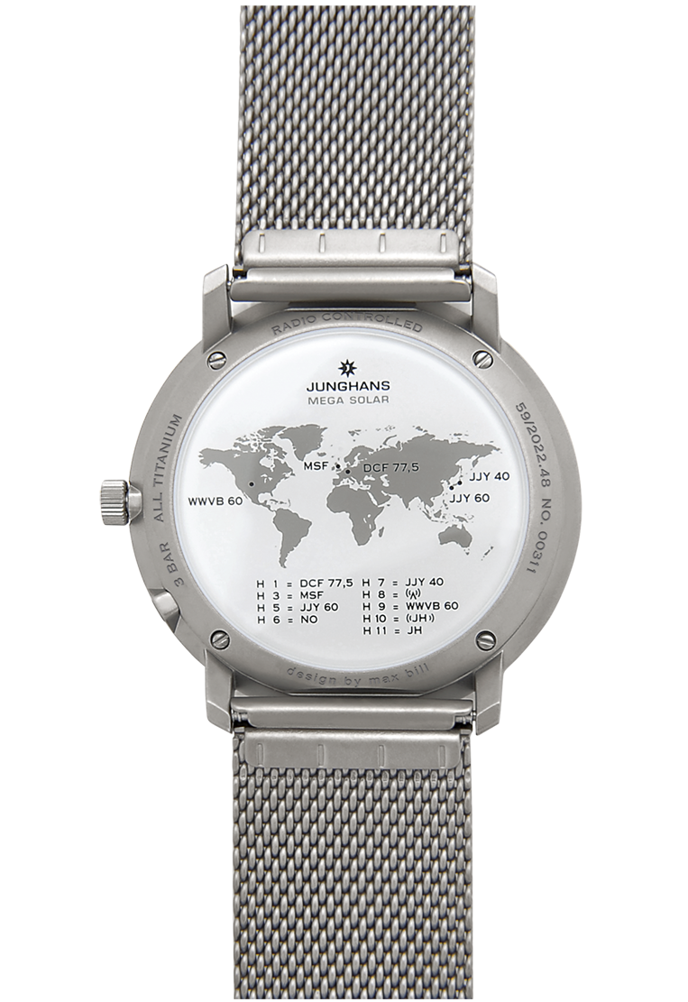 FUNZIONAMENTO Data, comoda regolazione dell’ora mediante corona o app Junghans MEGA in pochi secondi, lancetta dei secondi precisa al mezzo secondo