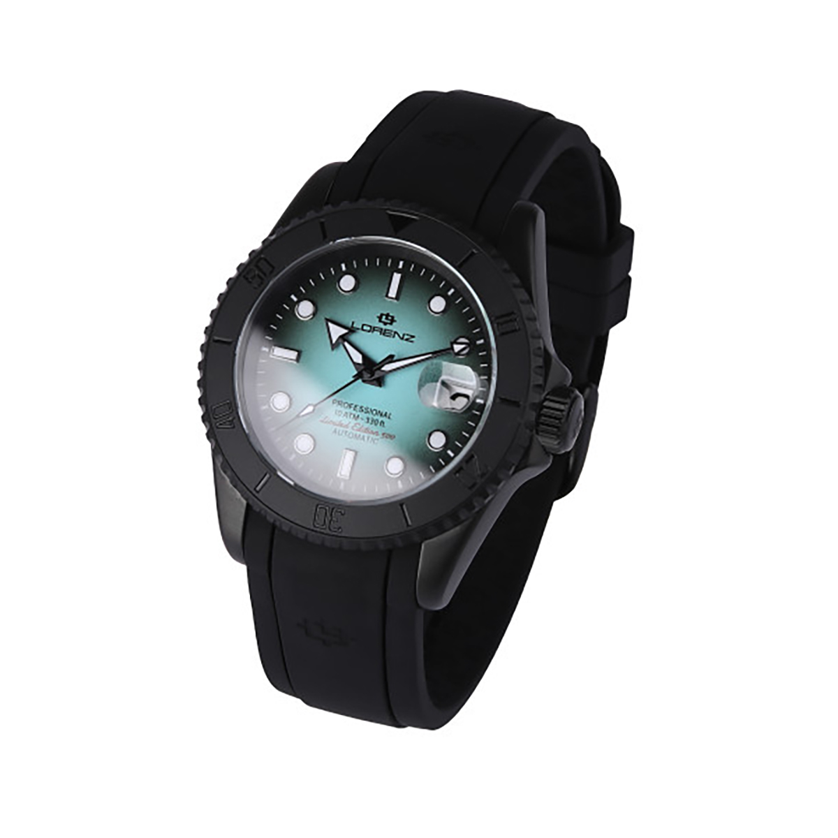Un nuovo orologio limitato a soli 500 pezzi numerati sul retro della cassa. Questa nuova referenza presenta una cassa dal diametro di 42 mm in acciaio 316L con trattamento ionizzato nero opaco. Robusto nella struttura ma raffinato, grazie al caratteristico quadrante con una sfumatura radiale in tonalità turchesi e indici luminescenti bianchi. Un altro elemento di contrasto è la ghiera girevole unidirezionale a 120 scatti in ceramica opaca con numeri lucidi. Il fondello trasparente a vite permette di ammirare il peso oscillante personalizzato che alimenta il movimento automatico Seiko NH35. La corona a vite garantisce una resistenza all’acqua fino a 100 metri. A completare il tutto, lo splendido cofanetto a forma di casco da sub, nei colori dell’orologio, che ricorda il mondo delle immersioni, l’ambiente naturale di questo nuovo e prezioso orologio che si unisce alla famiglia Double Injection.