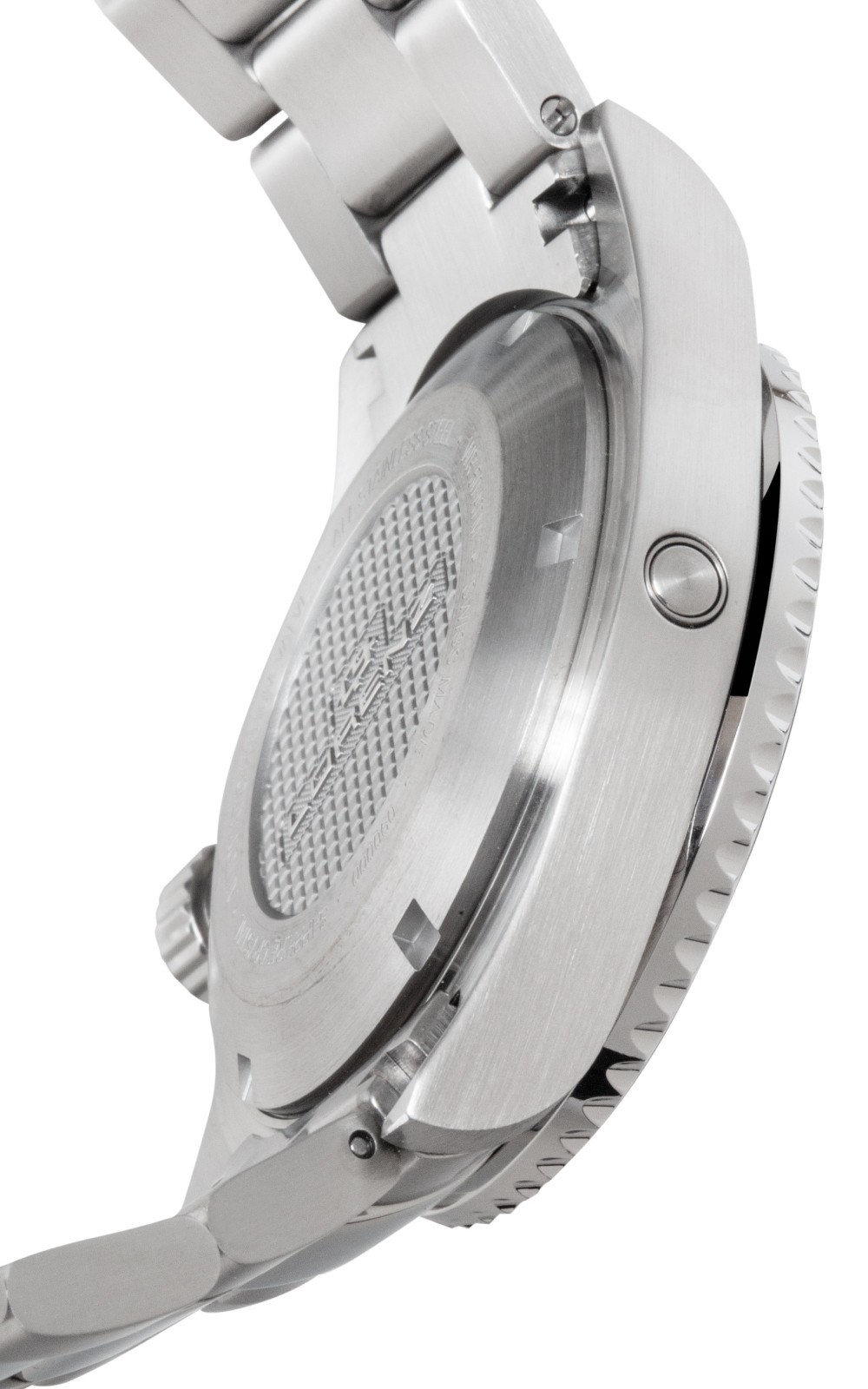 Orologio da polso solo tempo cassa rotonda in acciaio diametro 42 mm. con fondello a vite e vetro zaffiro. Cinturino in acciaio e con chiusura sportiva di sicurezza solida. Movimento automatico STP1-11. Resistente all’acqua fino a 500m.