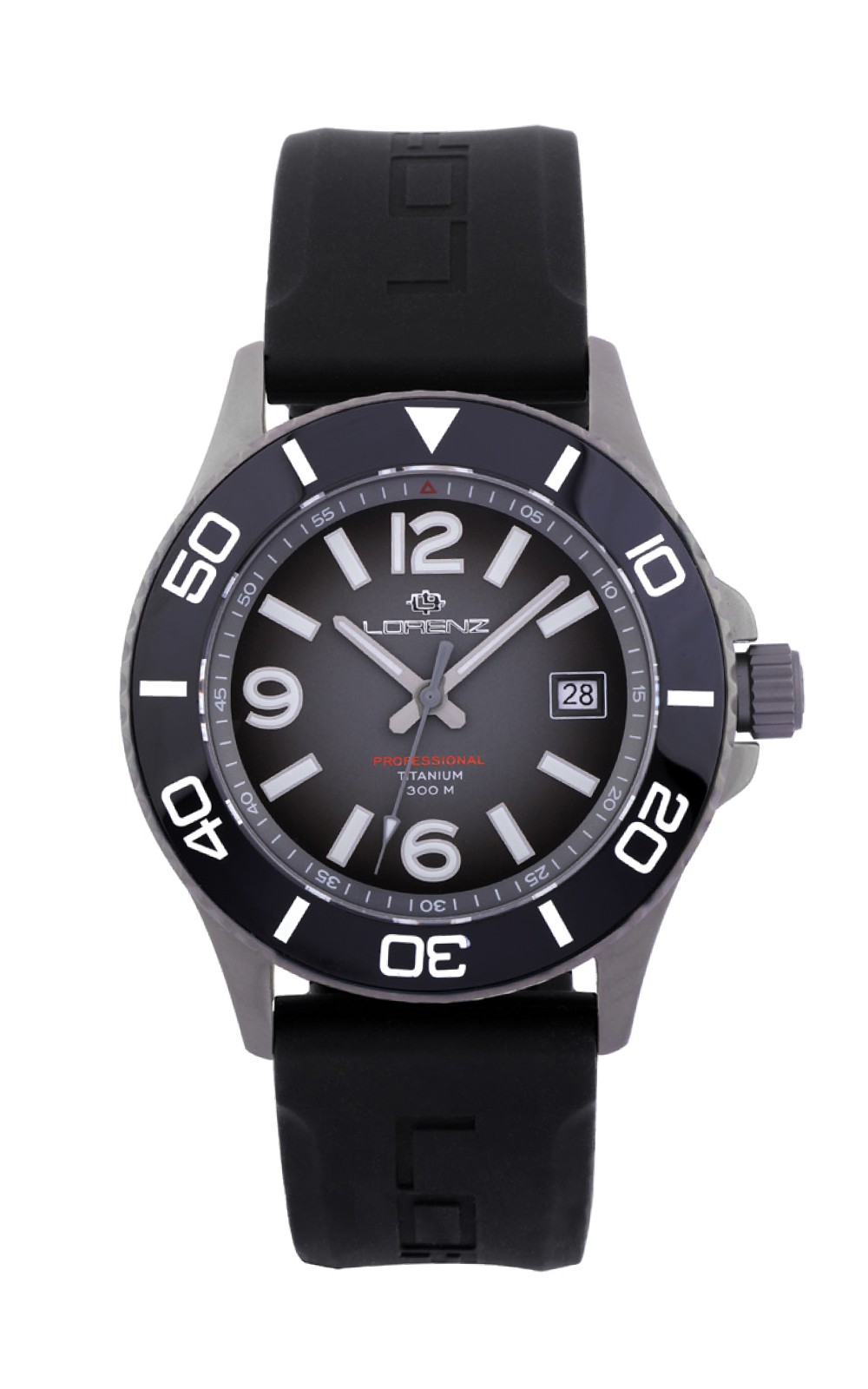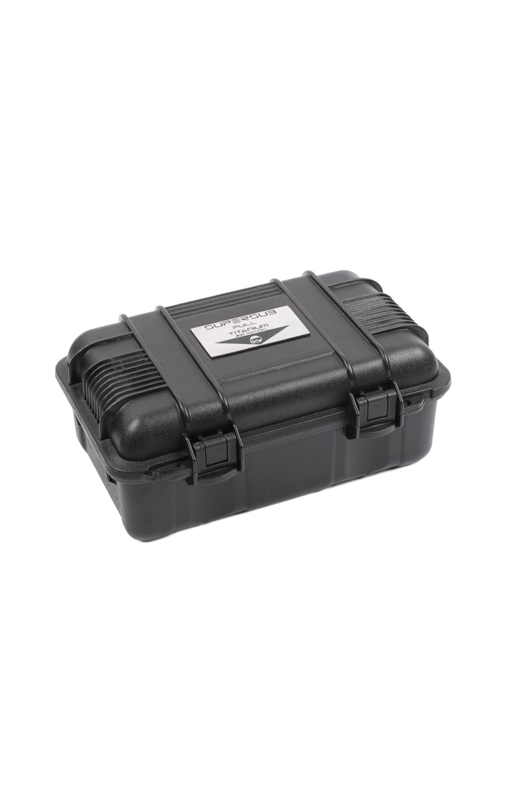 Orologio in titanio massiccio con finitura stinata e vetro zaffiro. Tre sere e datario a ore 3. Resistente all’acqua 300 metri. Fondo e corona a vite. Cofanetto Speciale Supersub.