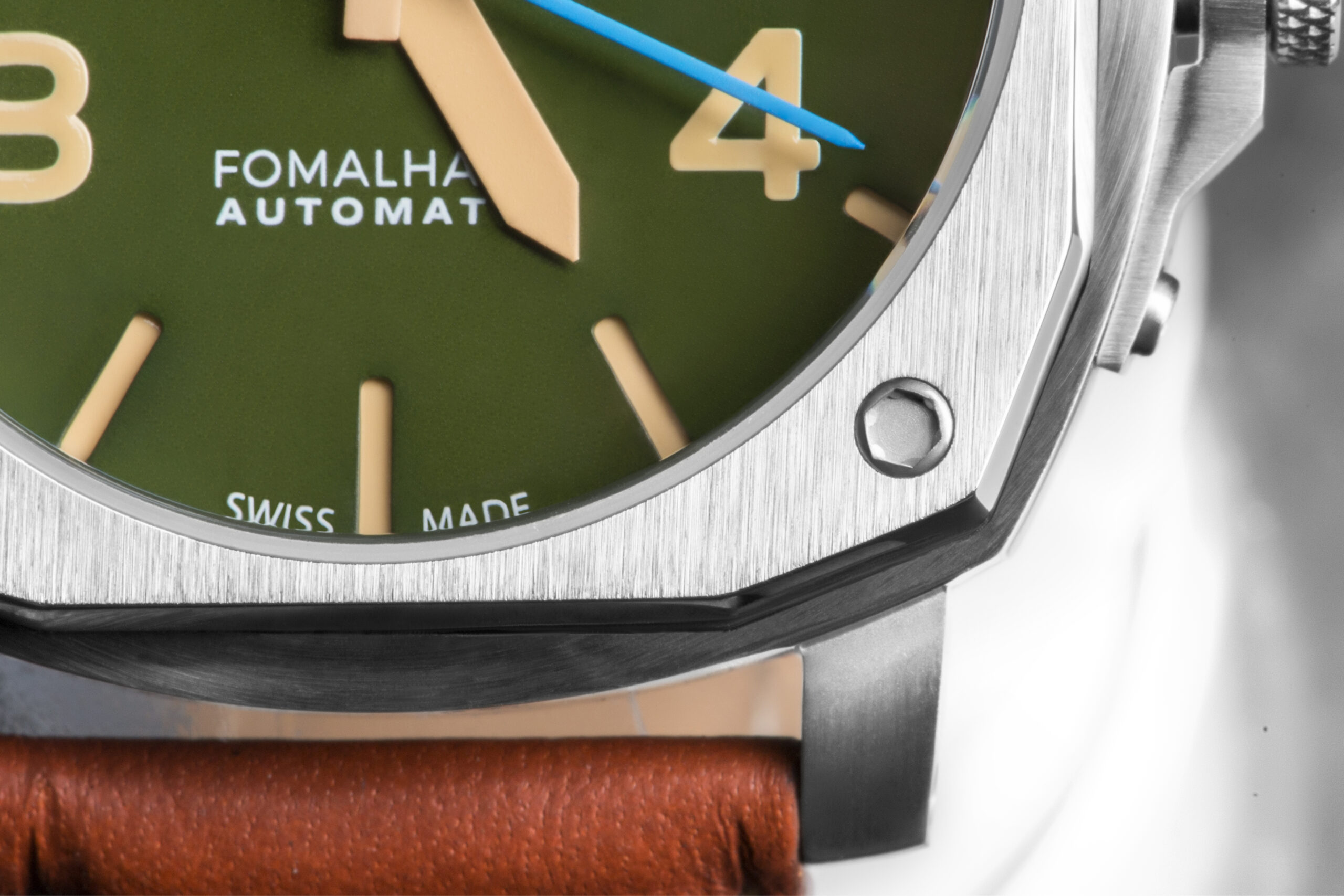 Quadrante: doppio strato, verde, effetto opaco (matt), numeri arabi e logo super lumed