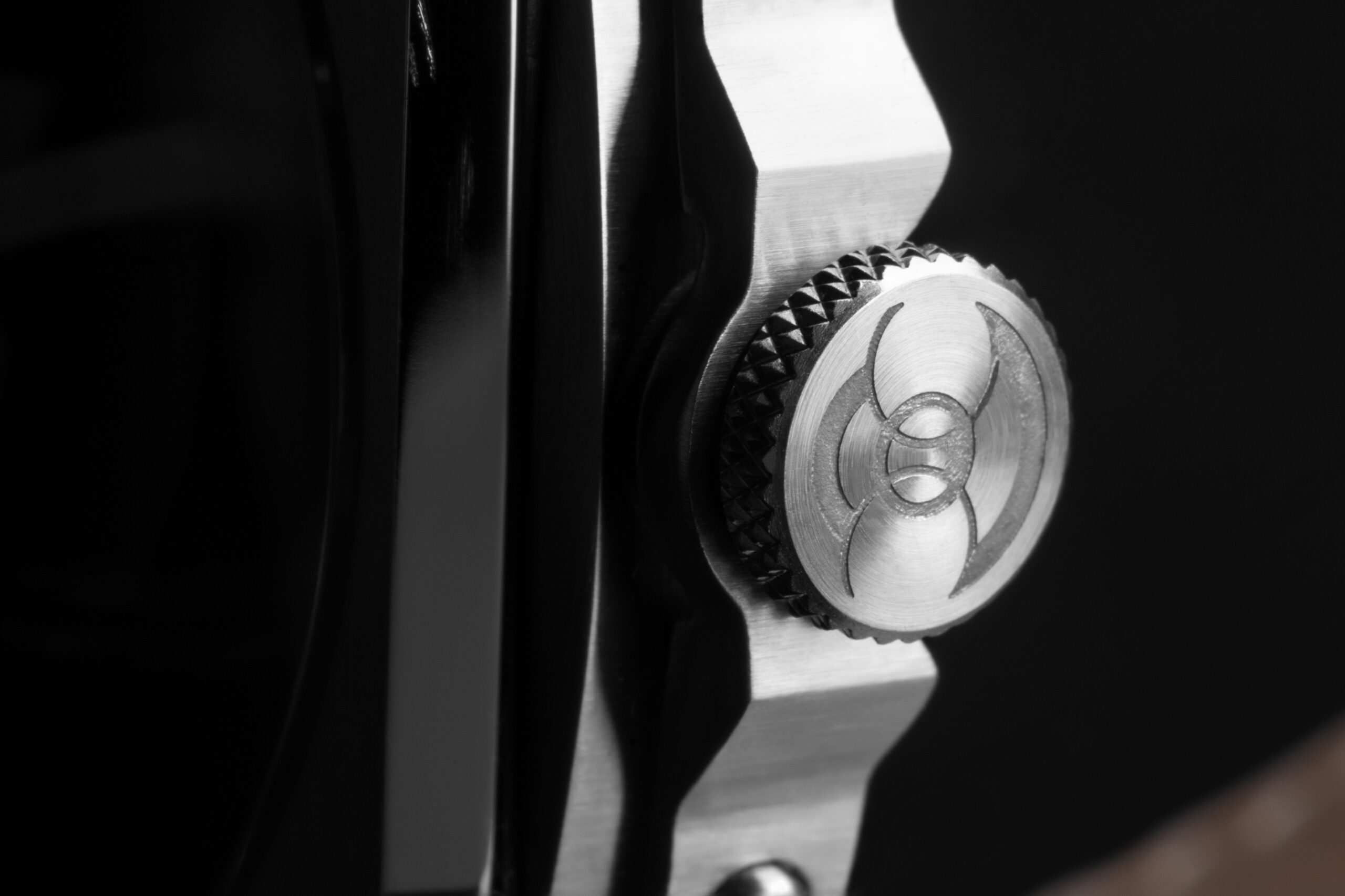 Corona: Acciaio inossidabile AISI 316L spazzolato e zigrinato con incisione, serrata a vite e ponte di sicurezza di fine corsa