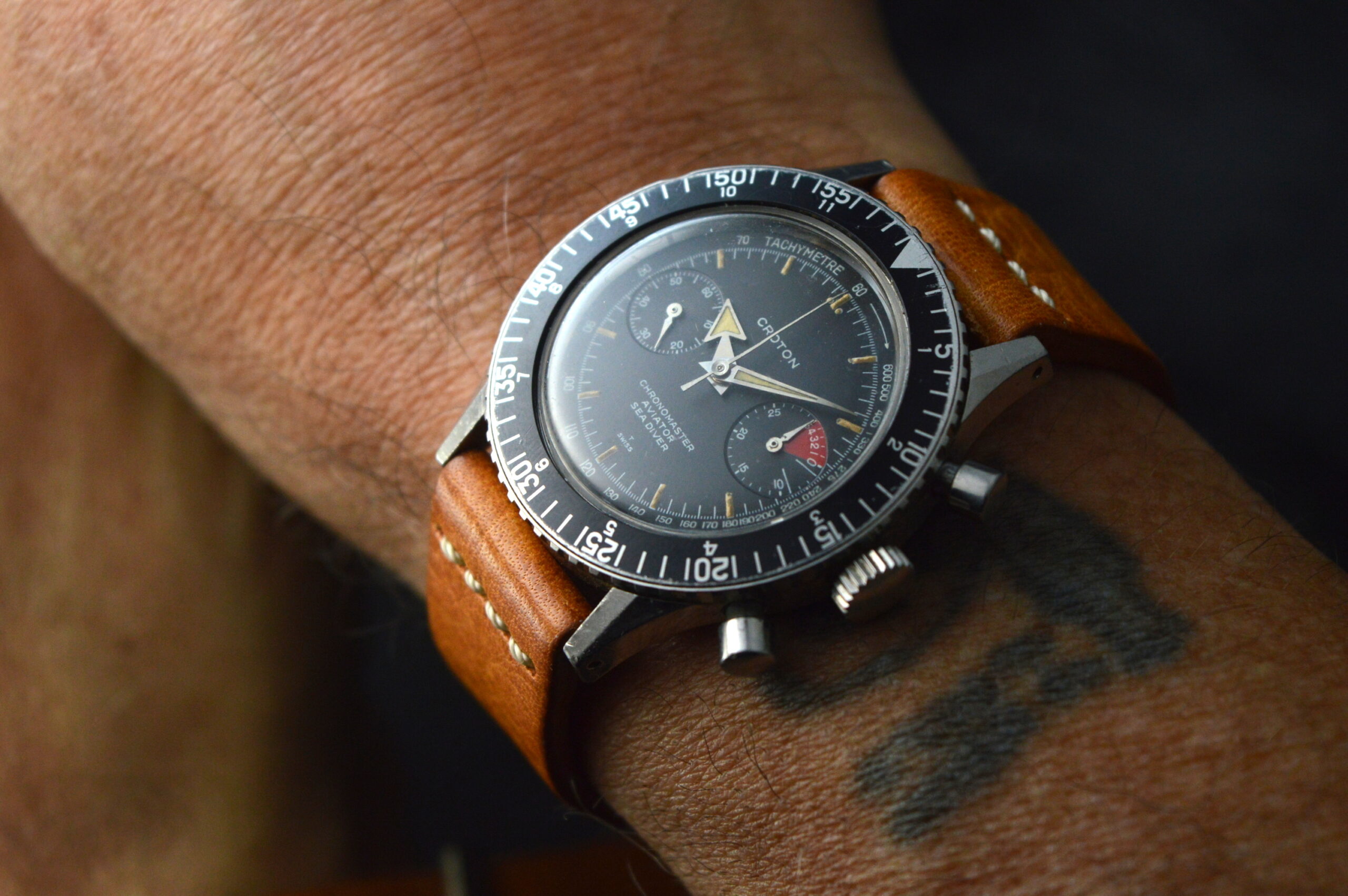 NIVADA CROTON CHRONOMASTER AVIATOR SEA DIVER VAL92 STAINLESS STEEL VINTAGE WATCH