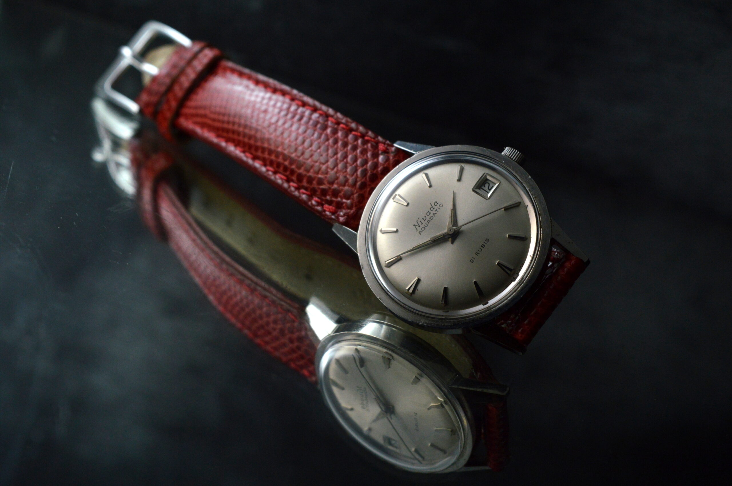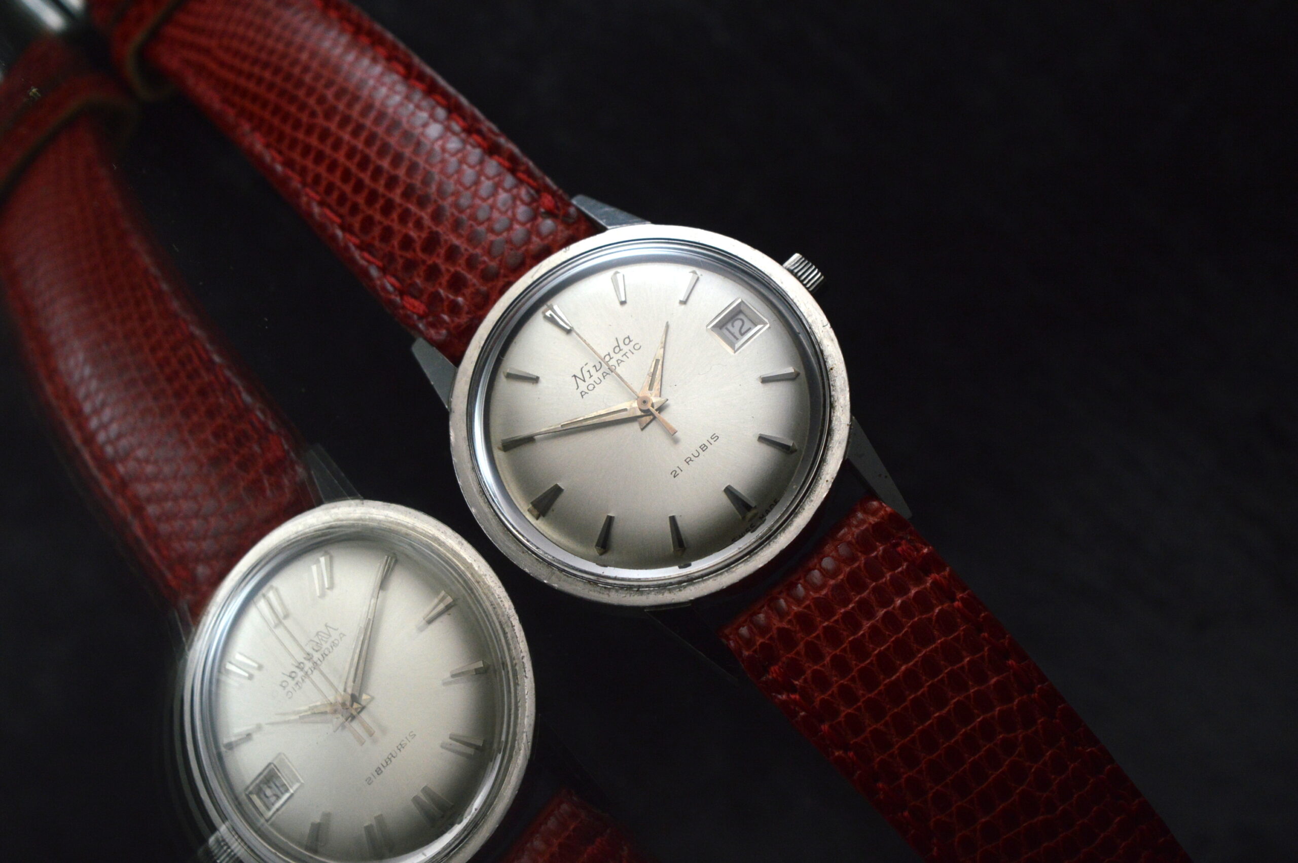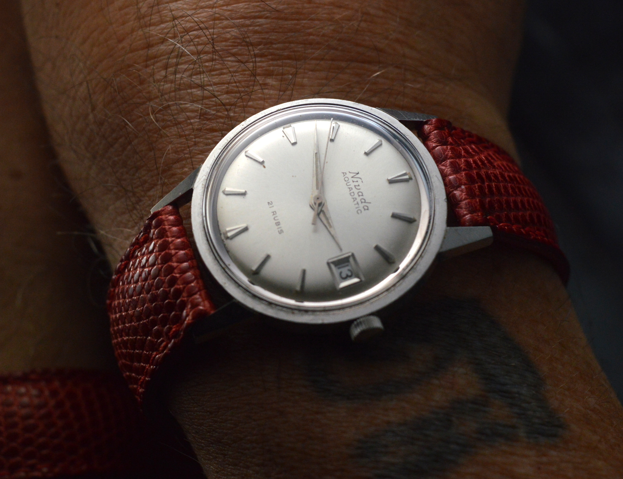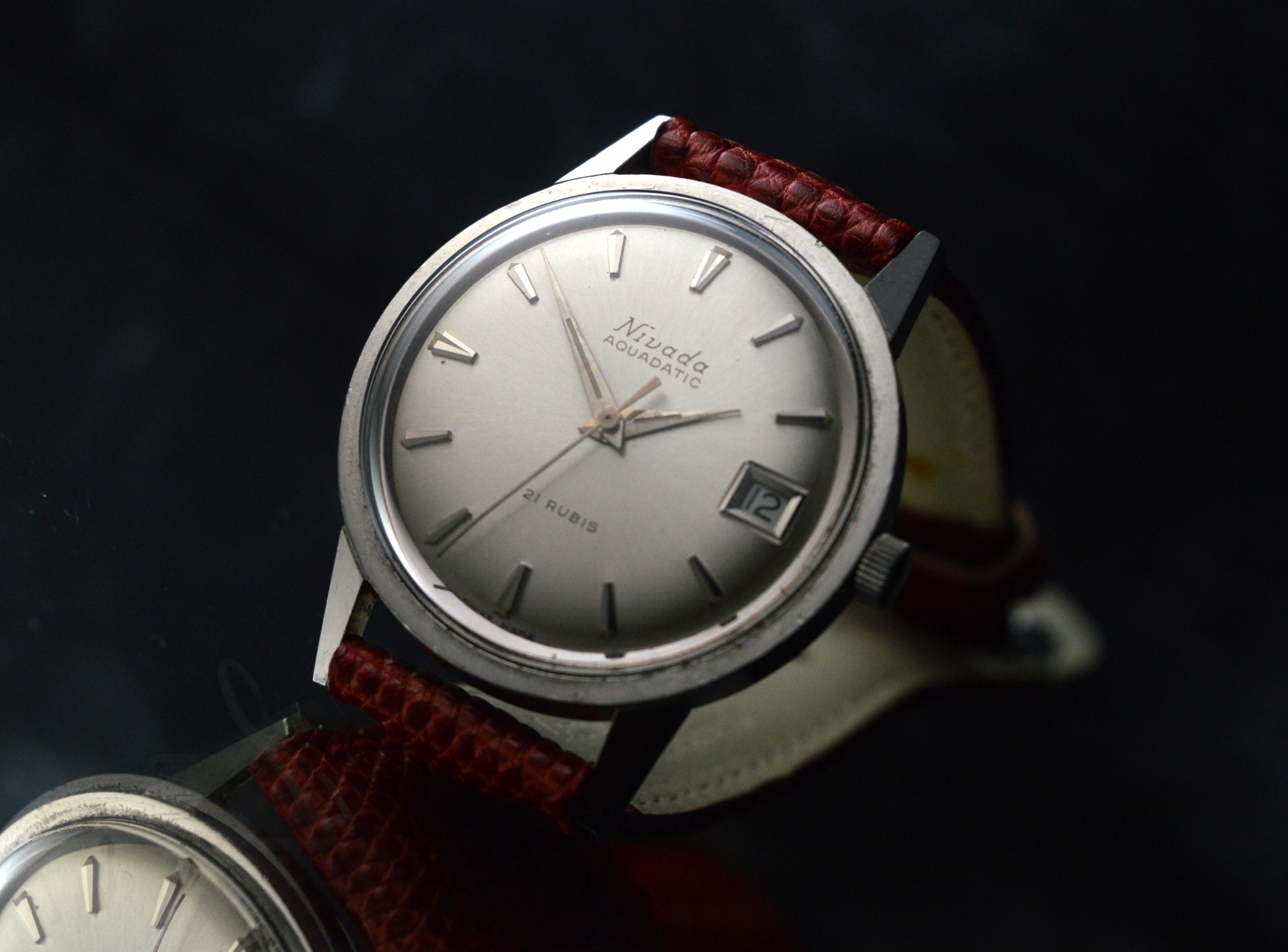 NIVADA GRENCHEN AQUADATIC SELFWINDING 34MM STAINLESS STEEL VINTAGE DATE WATCH
