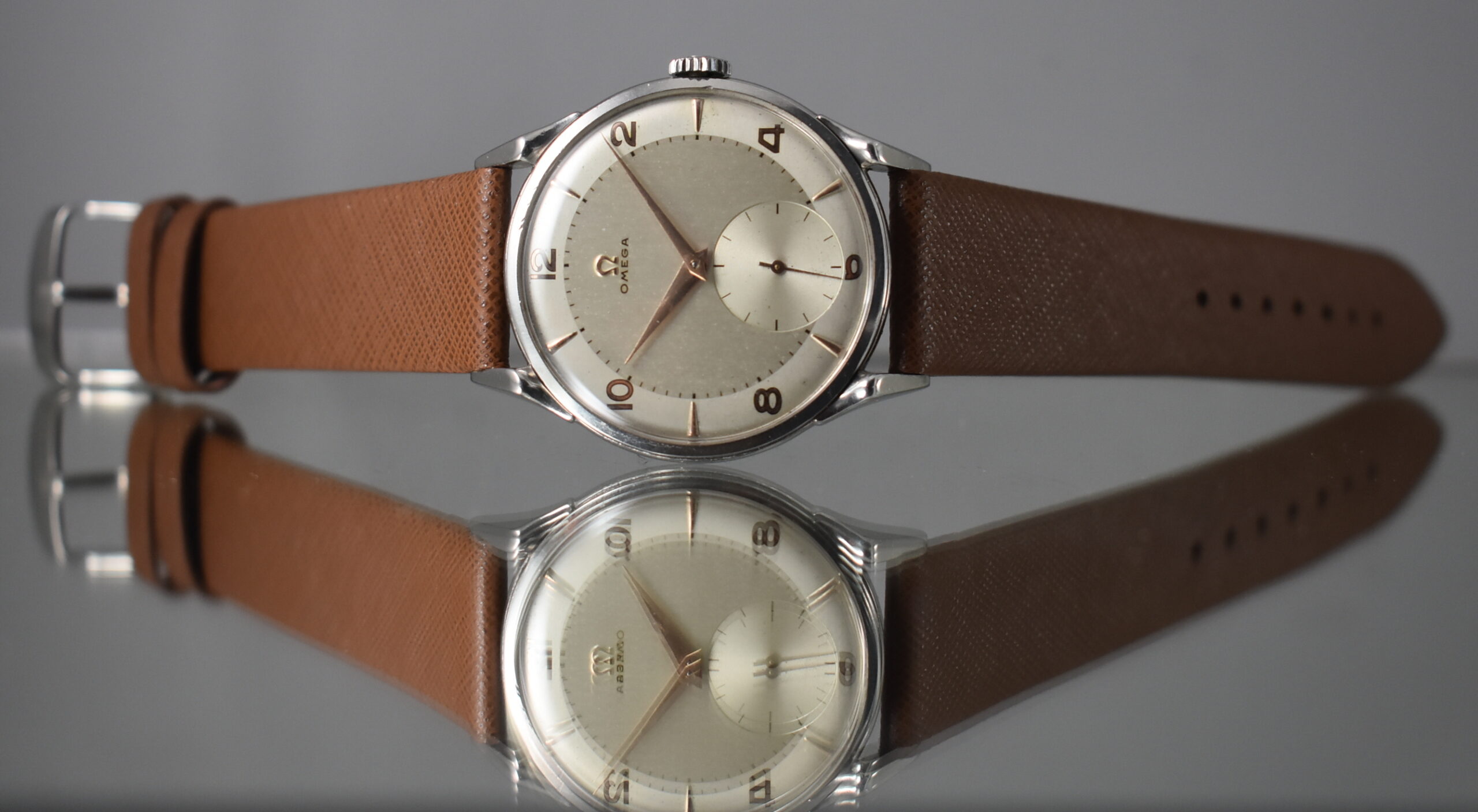 Omega Classic Oversized Calatrava Spider Lugs Tutone Dial Steel Rare
