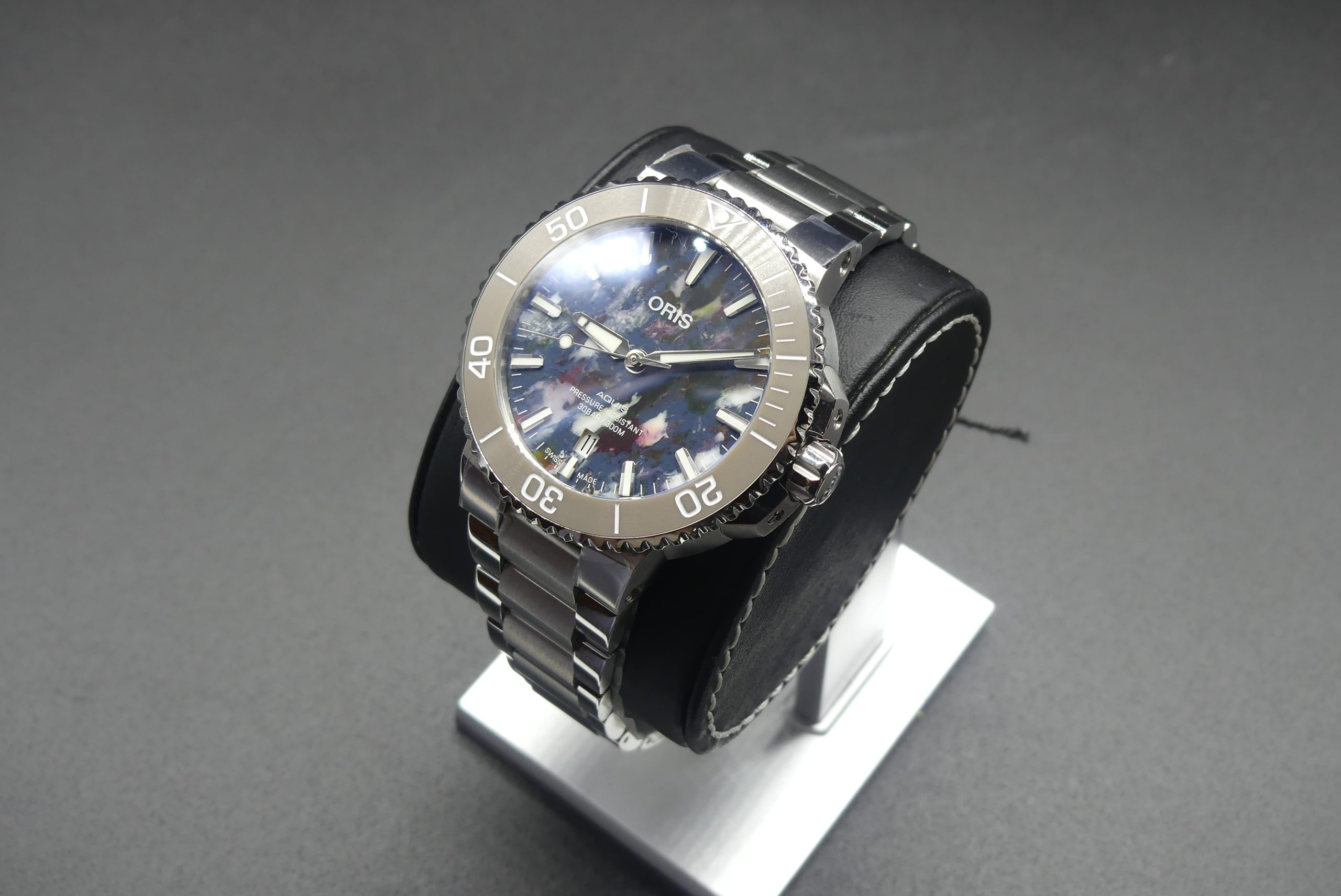 Il quadrante colorato dell’Aquis Date Upcycle da 41,5mm è realizzato con bottiglie di plastica riciclate. Non si tratta solo di apparenza: è il simbolo della nostra convinzione che insieme possiamo cambiare le cose.
