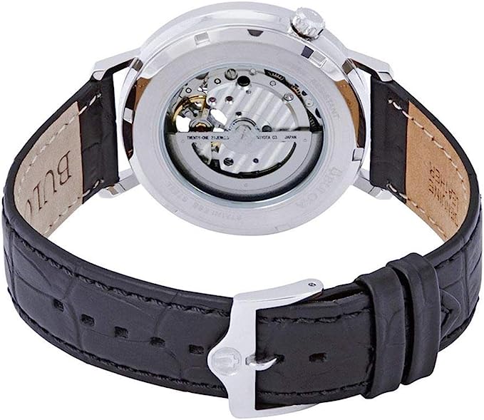 Orologio Automatico Da Uomo Di Bulova Della Collezione Aerojet. Orologio Con Cassa In Acciaio Di 41 Mm E Cinturino In Pelle . Chiusura: Ardiglione. Indici A Bastoni. Il Movimento È Automatico. La Resistenza All’Acqua È Di 3 Atm.