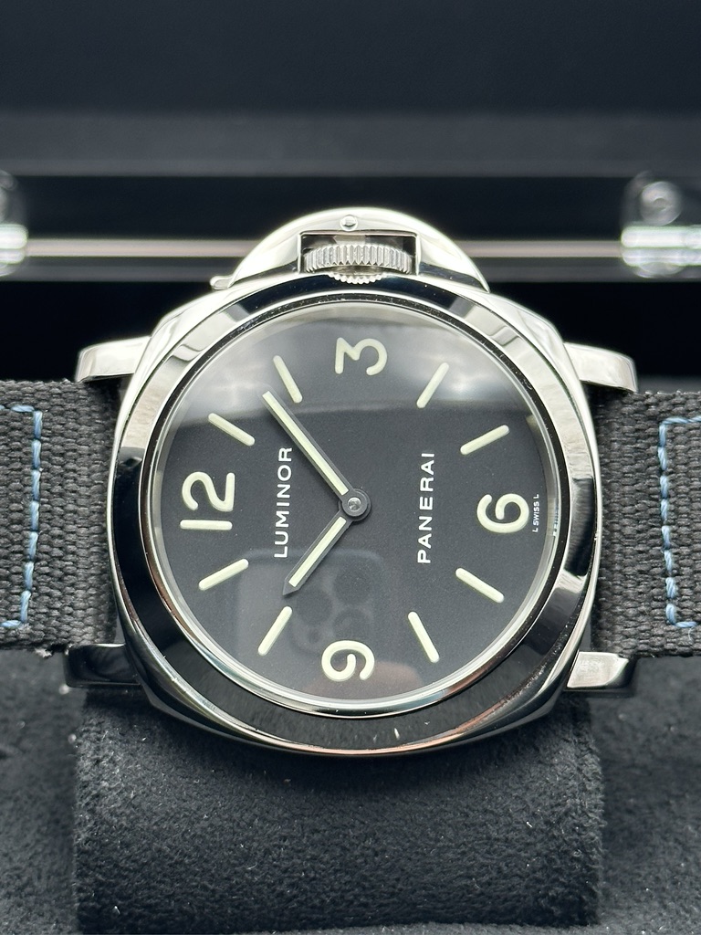 La prima referenza Luminor Base introdotta sotto la proprietà Vendome nel 1997 rappresenta l’essenza del design Panerai nella sua forma più pura. Il Luminor Base è il modello più minimalista e spoglio della linea Luminor. Il suo tratto distintivo è l’iconico quadrante nero, caratterizzato da audaci indici luminosi e dalle caratteristiche cifre 3, 6, 9 e 12, completate dalle sole lancette di ore e minuti.