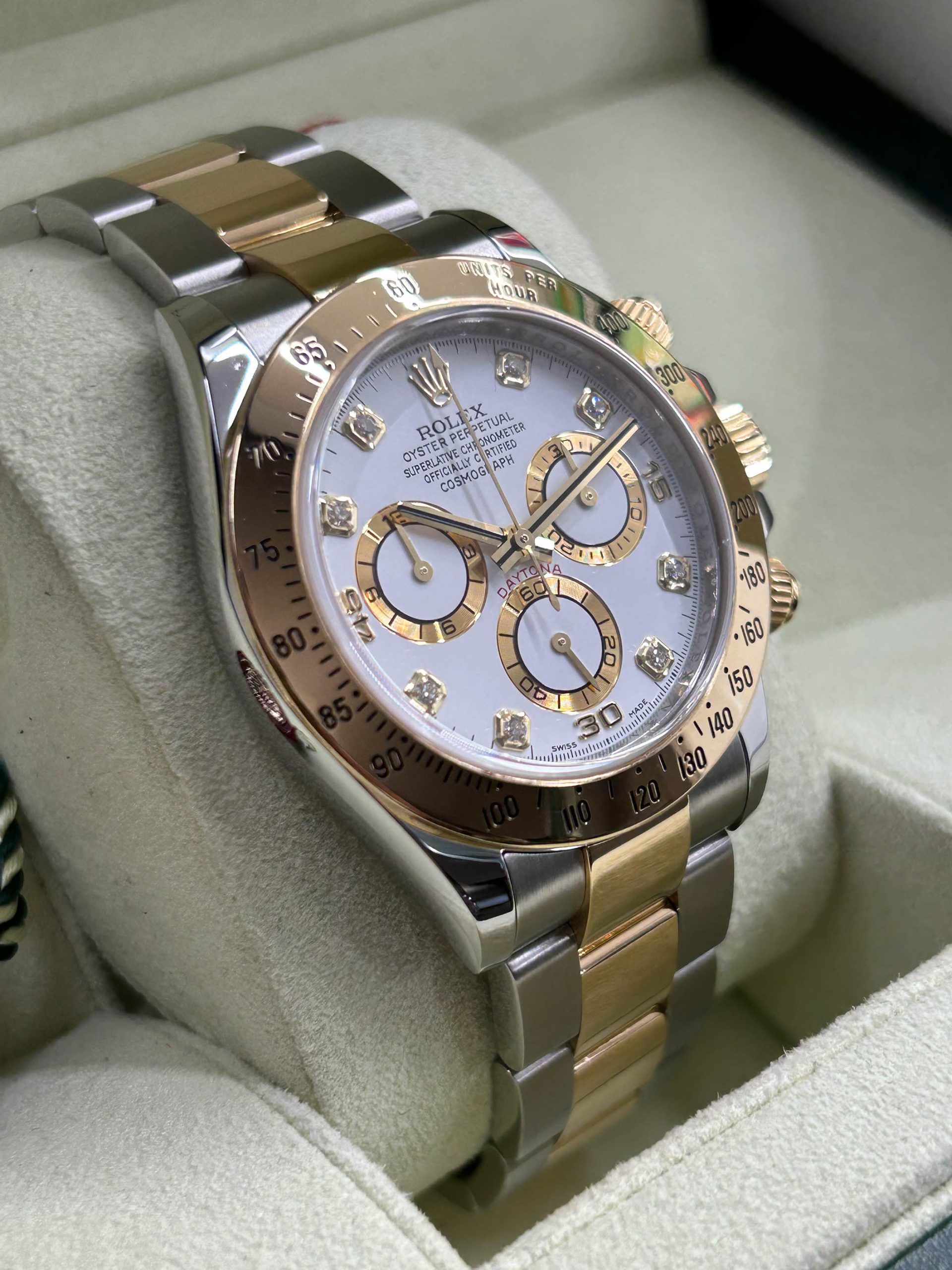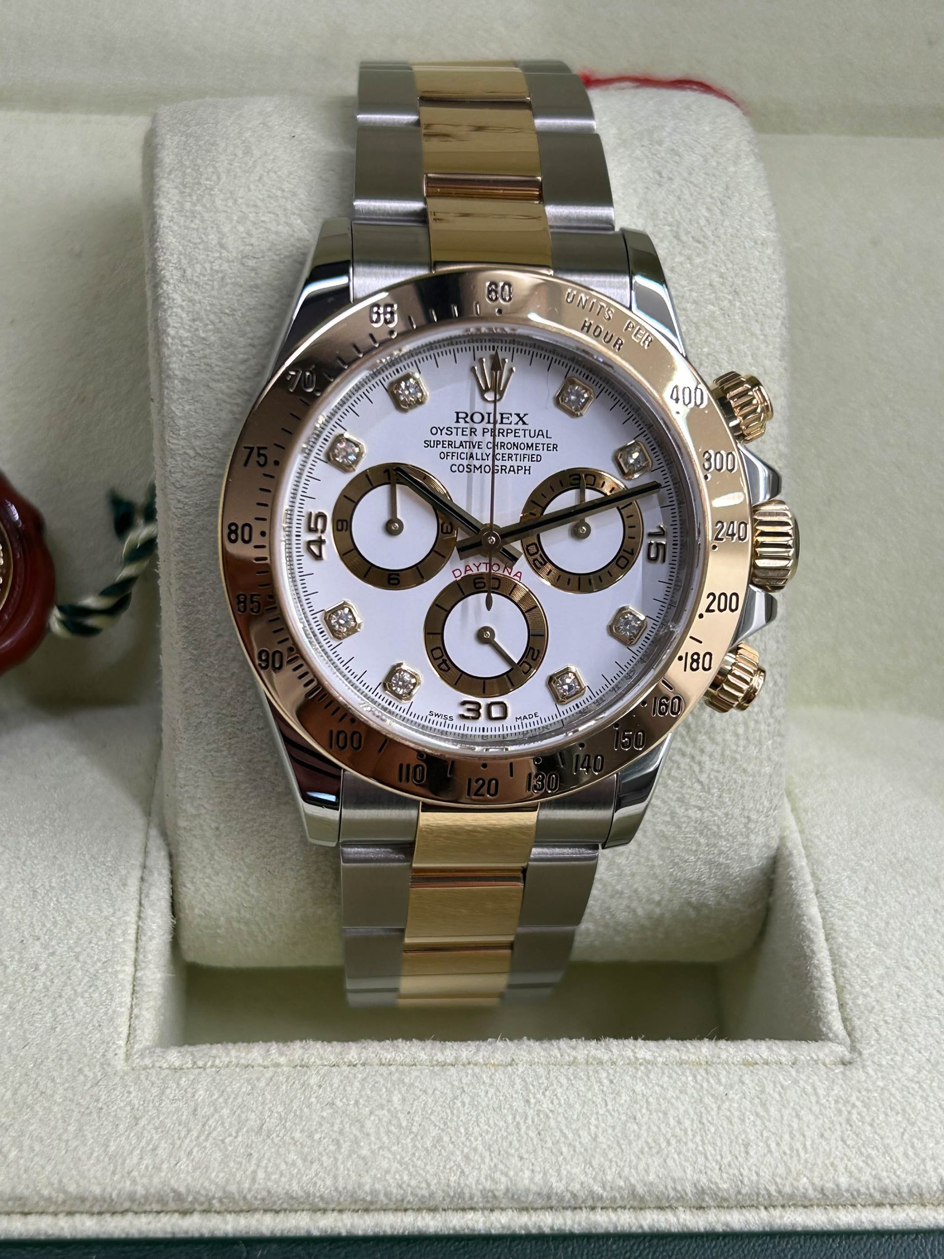 Rolex Daytona 18Kt Yellow Gold & Steel – White Dial & Diamonds – Ref 116523 – Year 2009