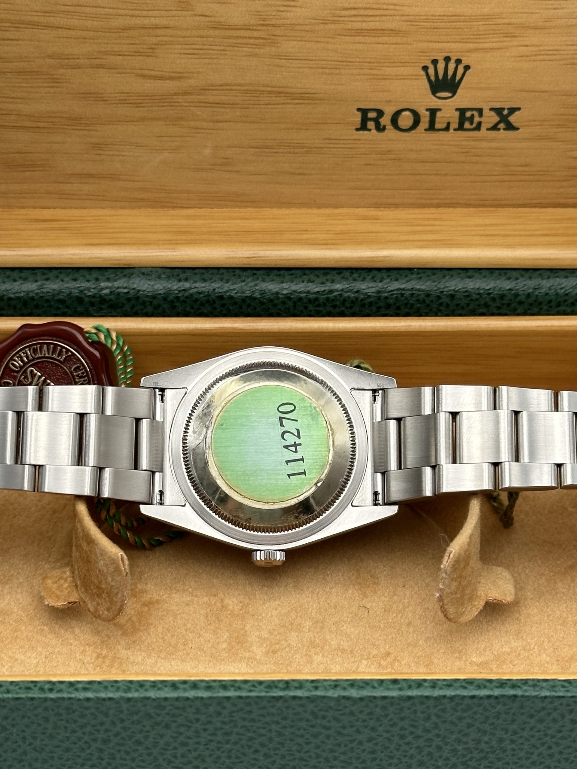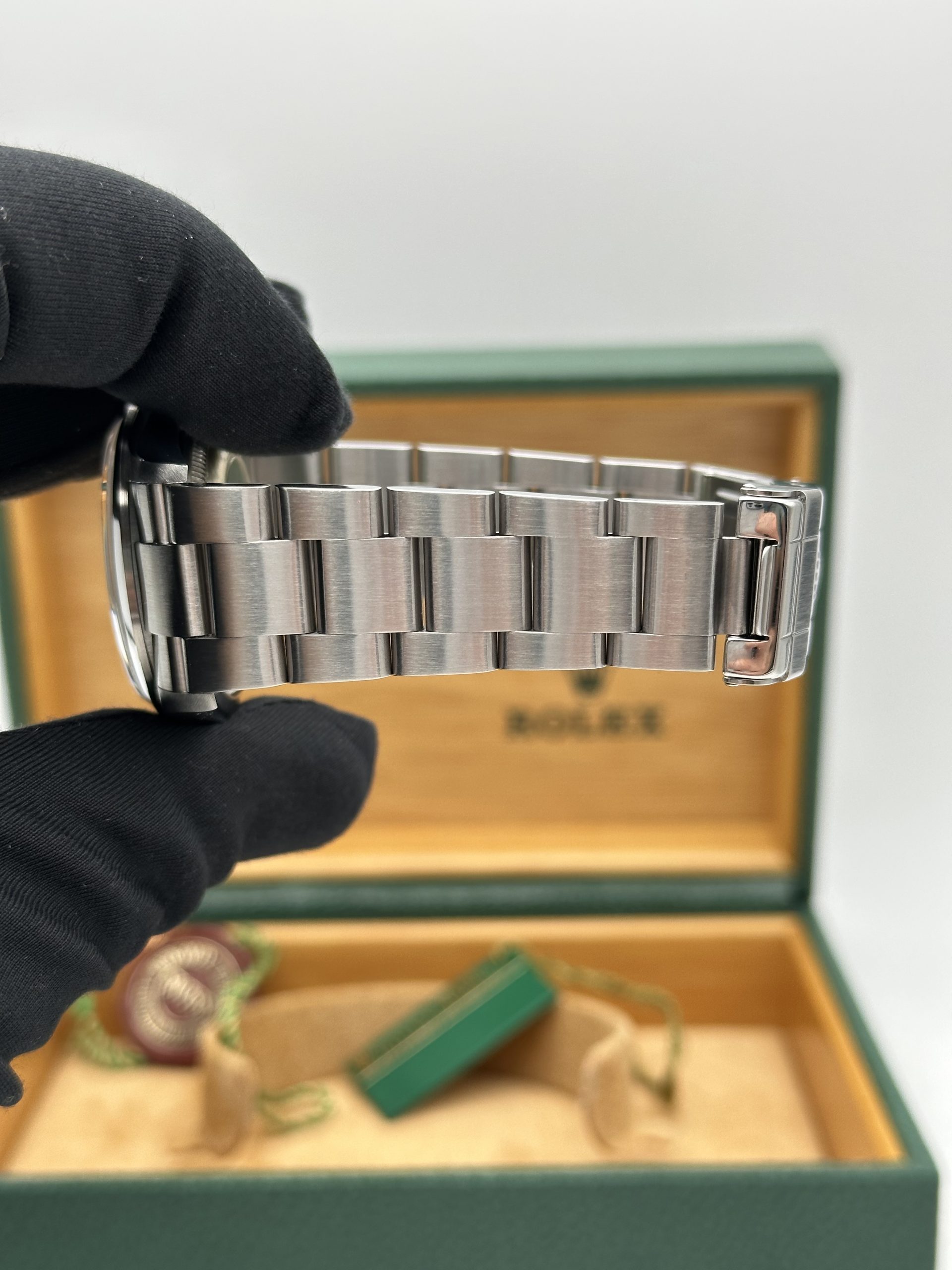 L’orologio presentato è in perfette condizioni ed è corredato da scatola e documenti originali Rolex, oltre alla nostra garanzia di 12 mesi