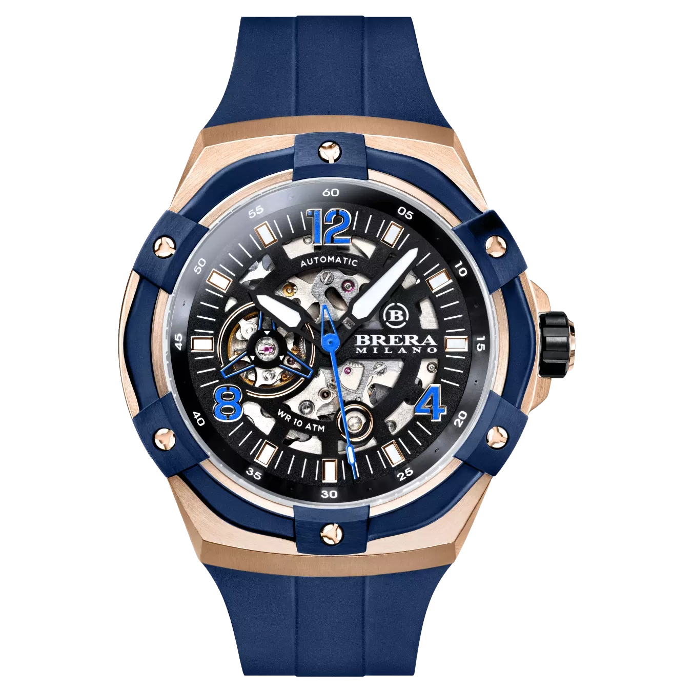 CASSA: Acciaio Inox (316L) – Spazzolata – IP Oro Rosa DIMENSIONE CASSA: Ø45 mm – H 13.45 mm CORONA: Acciaio Inox (316L) Ø7.5 mm – Chiusura a Vite GHIERA: Alluminio IP Blu – Intercambiabile con viti disegno Brera CRISTALLO: Zaffiro Antiriflesso QUADRANTE: Semi scheletrato Multilivello con Indici luminescenti applicati [:en] CASE: Stainless Steel (316L) – Brushed – Rose Gold IP CASE SIZE: Ø45 mm – H 13.45 mm CROWN: Stainless Steel (316L) Ø7.5 mm – Screw-Down Crown System BEZEL: Aluminum Blue IP – Interchangeable with Brera screws CRYSTAL: Antireflective Sapphire DIAL: Multilevel semi skeleton with applied luminescent Indexes [:] |