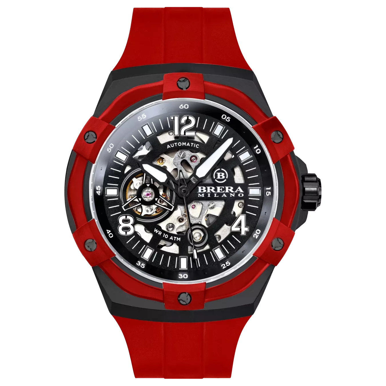 CASSA: Acciaio Inox (316L) – Spazzolata – IP Nero DIMENSIONE CASSA: Ø45 mm – H 13.45 mm CORONA: Acciaio Inox (316L) Ø7.5 mm – Chiusura a Vite GHIERA: Alluminio IP Rosso – Intercambiabile con viti disegno Brera CRISTALLO: Zaffiro Antiriflesso QUADRANTE: Semi scheletrato Multilivello con Indici luminescenti applicati [:en] CASE: Stainless Steel (316L) – Brushed – Black IP CASE SIZE: Ø45 mm – H 13.45 mm CROWN: Stainless Steel (316L) Ø7.5 mm – Screw-Down Crown System BEZEL: Aluminum Red IP – Interchangeable with Brera screws CRYSTAL: Antireflective Sapphire DIAL: Multilevel semi skeleton with applied luminescent Indexes [:] |