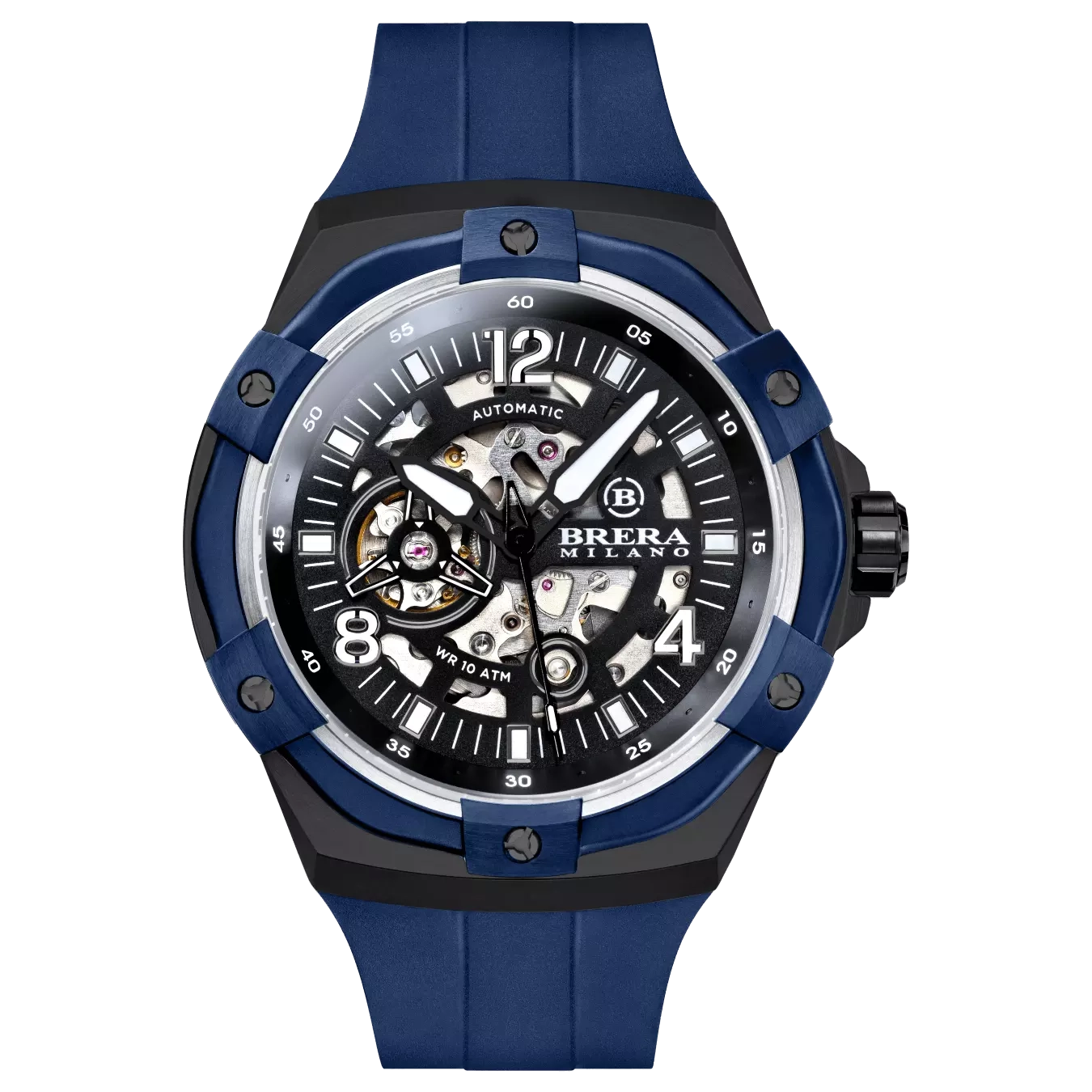 DIMENSIONE CASSA: Ø45 mm – H 13.45 mm CORONA: Acciaio Inox (316L) Ø7.5 mm – Chiusura a Vite GHIERA: Alluminio IP Blu – Intercambiabile con viti disegno Brera CRISTALLO: Zaffiro Antiriflesso QUADRANTE: Semi scheletrato Multilivello con Indici luminescenti applicati [:en] CASE: Stainless Steel (316L) – Brushed – Black IP CASE SIZE: Ø45 mm – H 13.45 mm CROWN: Stainless Steel (316L) Ø7.5 mm – Screw-Down Crown System BEZEL: Aluminum Blue IP – Interchangeable with Brera screws CRYSTAL: Antireflective Sapphire DIAL: Multilevel semi skeleton with applied luminescent Indexes [:] |