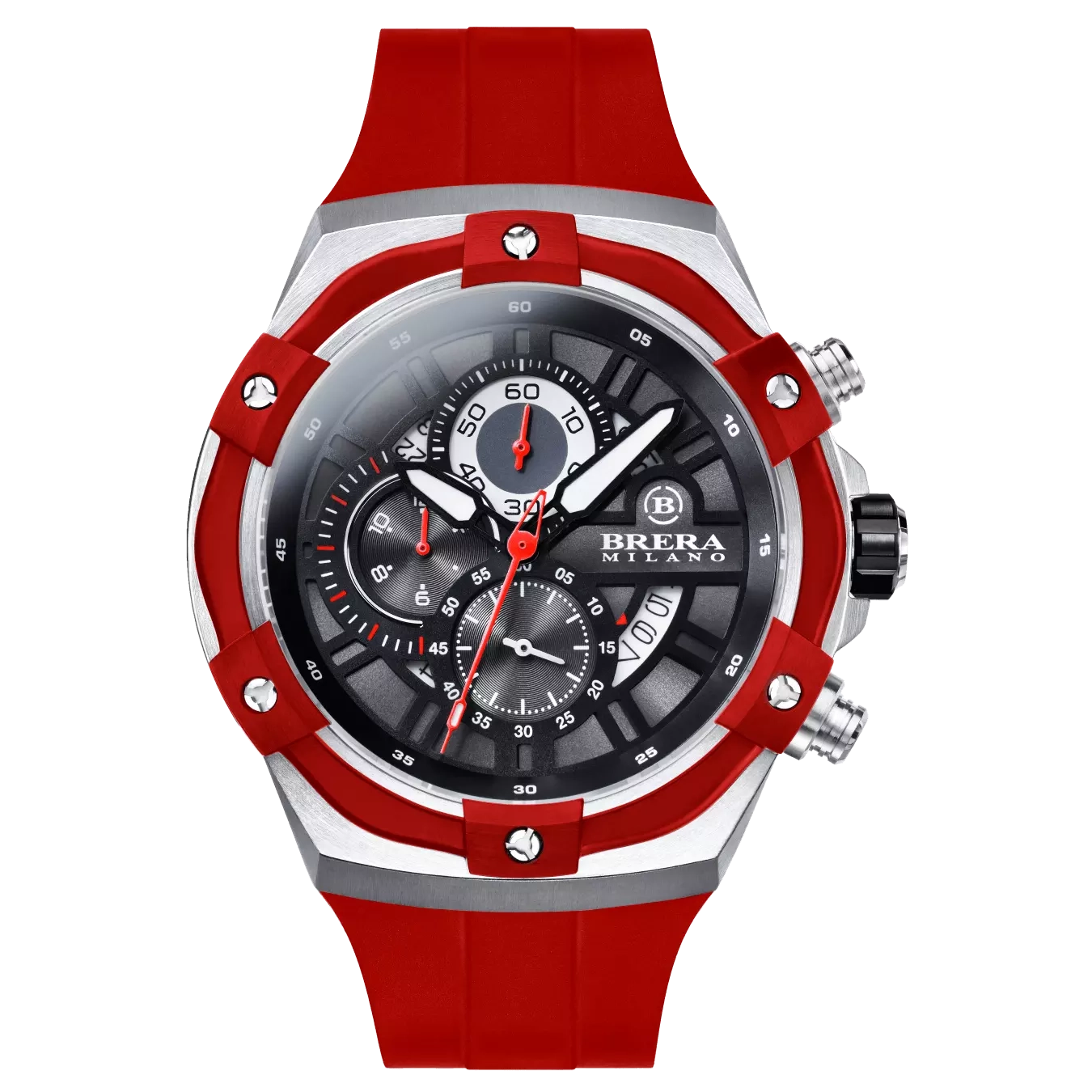 CASSA: Acciaio Inox (316L) – Spazzolata DIMENSIONE CASSA: Ø45 mm – H 13.45 mm CORONA: Acciaio Inox (316L) Ø7.5 mm – Chiusura a Vite GHIERA: Alluminio IP Rosso – Intercambiabile con viti disegno Brera CRISTALLO: Zaffiro Antiriflesso QUADRANTE: Multilivello [:en] CASE: Stainless Steel (316L) – Brushed CASE SIZE: Ø45 mm – H 13.45 mm CROWN: Stainless Steel (316L) Ø7.5 mm – Screw-Down Crown System BEZEL: Aluminum Red IP – Interchangeable with Brera screws CRYSTAL: Antireflective Sapphire DIAL: Multilevel [:] |