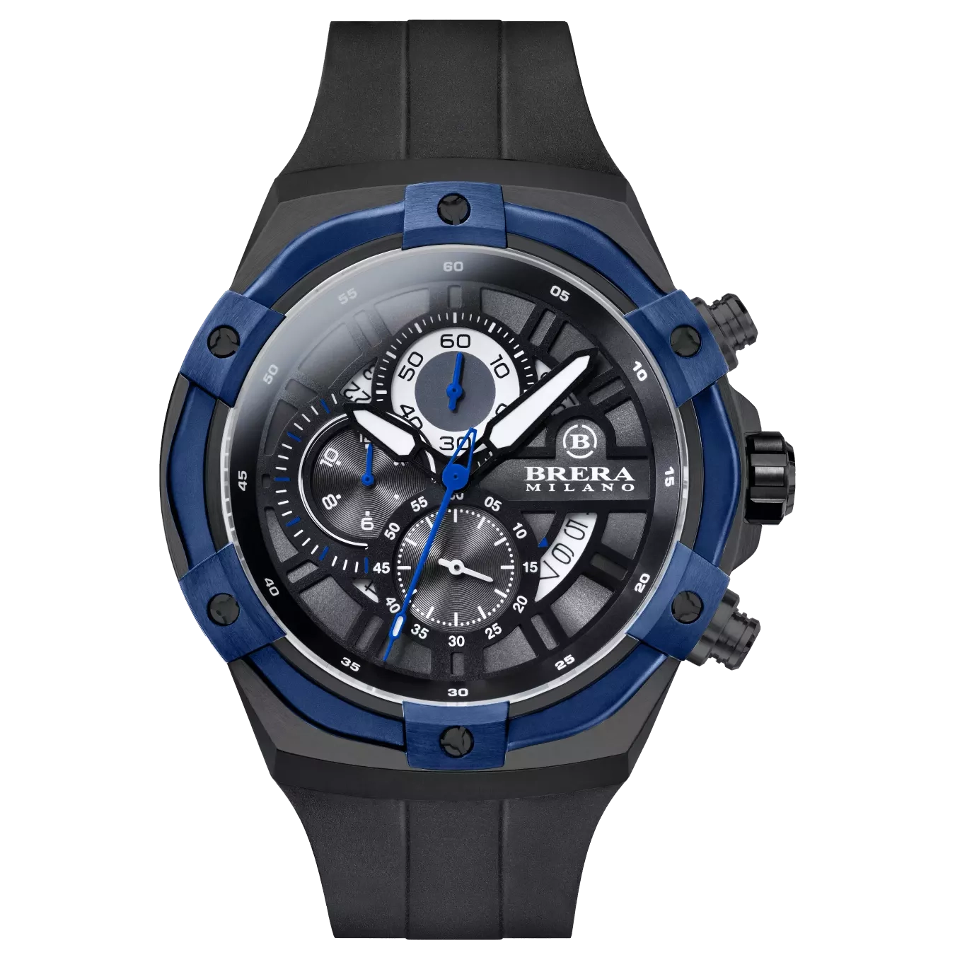 CASSA: Acciaio Inox (316L) – Spazzolata – IP Nero DIMENSIONE CASSA: Ø45 mm – H 13.45 mm CORONA: Acciaio Inox (316L) Ø7.5 mm – Chiusura a Vite GHIERA: Acciaio Inox (316L) IP Blu – Intercambiabile con viti disegno Brera CRISTALLO: Zaffiro Antiriflesso QUADRANTE: Multilivello [:en] CASE: Stainless Steel (316L) – Brushed – Black IP CASE SIZE: Ø45 mm – H 13.45 mm CROWN: Stainless Steel (316L) Ø7.5 mm – Screw-Down Crown System BEZEL: Stainless Steel (316L) Blue IP – Interchangeable with Brera screws CRYSTAL: Antireflective Sapphire DIAL: Multilevel [:] |