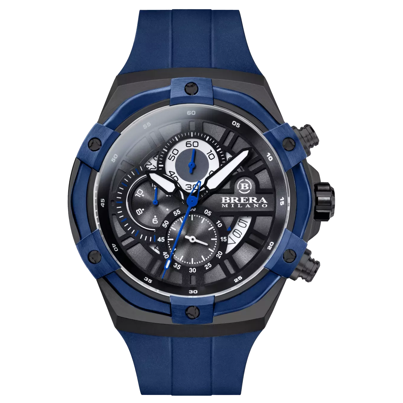 CASSA: Acciaio Inox (316L) – Spazzolata – IP Nero DIMENSIONE CASSA: Ø45 mm – H 13.45 mm CORONA: Acciaio Inox (316L) Ø7.5 mm – Chiusura a Vite GHIERA: Acciaio Inox (316L) IP Blu – Intercambiabile con viti disegno Brera CRISTALLO: Zaffiro Antiriflesso QUADRANTE: Multilivello [:en] CASE: Stainless Steel (316L) – Brushed – Black IP CASE SIZE: Ø45 mm – H 13.45 mm CROWN: Stainless Steel (316L) Ø7.5 mm – Screw-Down Crown System BEZEL: Stainless Steel (316L) Blue IP – Interchangeable with Brera screws CRYSTAL: Antireflective Sapphire DIAL: Multilevel [:] |