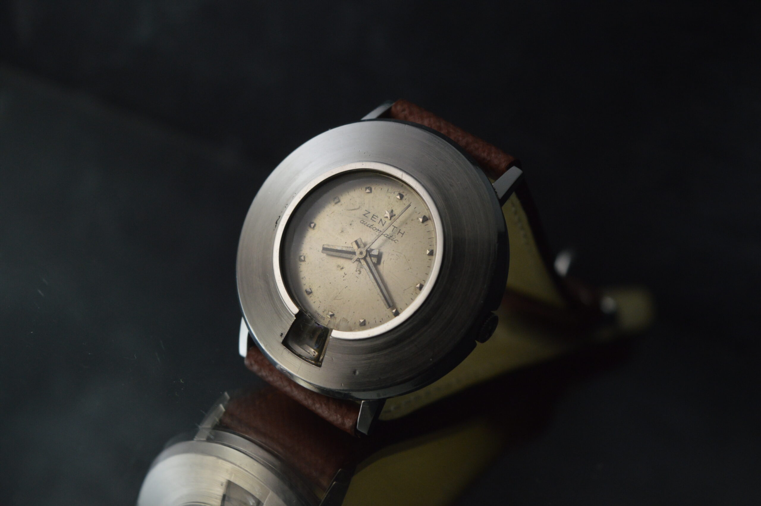 ZENITH RARE KEYHOLE AUTOMATIC A6621 VINTAGE STAINLESS STEEL FLYING SAUCER WATCH
