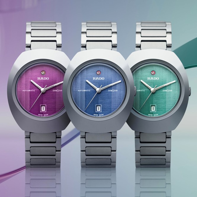 Il Rado DiaStar Original, lanciato nel 1962 come primo orologio con vetro zaffiro resistente ai graffi, ritorna in una versione piccola e compatta da soli 30 mm, disponibile in tre vivaci tonalità: Turchese, Dahlia e Glacier Lake. La cassa mantiene la caratteristica forma a elmetto con una lunetta in Ceramos color platino, un materiale composito di carburo di titanio che offre la durezza della ceramica e la lucentezza di una lega metallica. Il quadrante è suddiviso in quattro segmenti con finiture satinate in direzioni opposte, creando un effetto dinamico. L’orologio è alimentato dal movimento automatico ETA 2671 e viene fornito con un bracciale in acciaio inossidabile con maglie a H lucidate e maglie interne spazzolate, dotato di una chiusura tripla pieghevole. Con una resistenza all’acqua fino a 100 metri, il nuovo DiaStar Original 30mm è disponibile al prezzo di 1.750 euro.