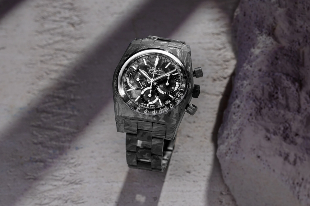 Zenith e Revolution continuano la loro collaborazione con un nuovo capitolo della serie Chronomaster Revival, presentando l’A3818 Cover Girl Carbon, una reinterpretazione moderna dell’iconico cronografo El Primero del 1971. Dopo il successo della prima riedizione in acciaio del 2020 e della successiva versione in titanio Airweight Cover Girl del 2022, questa nuova edizione spinge ancora oltre i confini dei materiali utilizzando una cassa interamente realizzata in fibra di carbonio ad alto modulo, un materiale noto per la sua leggerezza e resistenza. Il peso complessivo dell’orologio è di soli 55 grammi, il che lo rende una delle versioni più leggere mai realizzate del Chronomaster Revival. La vera particolarità di questo modello è il bracciale, anch’esso in fibra di carbonio, che riprende il classico design vintage ma che sarà disponibile esclusivamente per soli 10 pezzi dei 150 totali di questa versione. Il quadrante mantiene il design originale dell’A3818, con la caratteristica scala cronografica a dente di squalo che lo ha reso un’icona tra i collezionisti. All’interno della cassa batte il movimento El Primero 400, il celebre calibro automatico ad alta frequenza con ruota a colonne e una riserva di carica di circa 50 ore. I 140 pezzi con cinturino in velcro e cinturino in pelle hanno un prezzo di 14.000€, mentre gli unici 10 con bracciale in carbonio forgiato dovrebbero essere venduti a circa 30.000€.