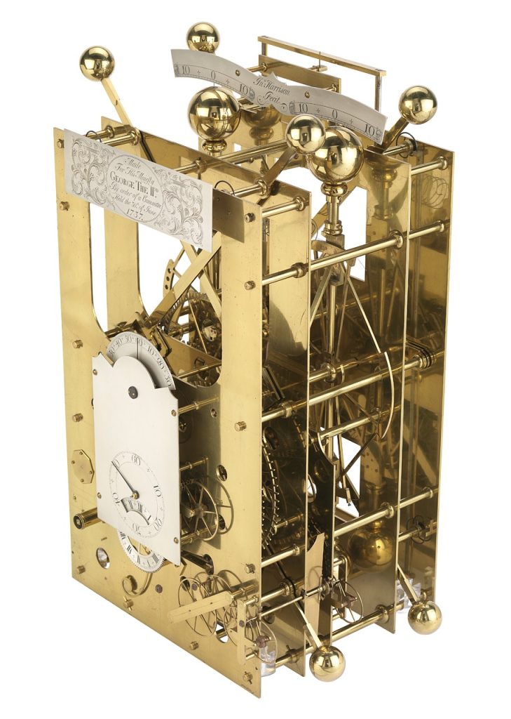 Purtroppo, nonostante il brevetto, l’orologio risultò impreciso in mare rendendo lo sforzo di Huygens vano. Si sarebbe dovuto attendere l’arrivo di un falegname inglese, John Harrison, per trovare una soluzione efficace al problema che era talmente sentito al punto da costringere, nel 1714, il governo britannico a bandire un concorso a premi appositamente ideato per incentivare la scoperta di un metodo per determinare la longitudine in mare, con compensi che andavano da 10.000 a 20.000 sterline (da £ 2 milioni a 4 milioni nel 2024) a seconda dei risultati ottenuti. Come detto, John Harrison era un falegname dello Yorkshire con la passione per l’orologeria che lo portò a dedicare tutta la vita a questa sfida. Egli riuscì a presentare un progetto di orologio funzionante già nel 1735 basato su una coppia di travi contro-oscillanti collegate da molle il cui movimento non era influenzato dalla gravità o dal movimento di una nave.