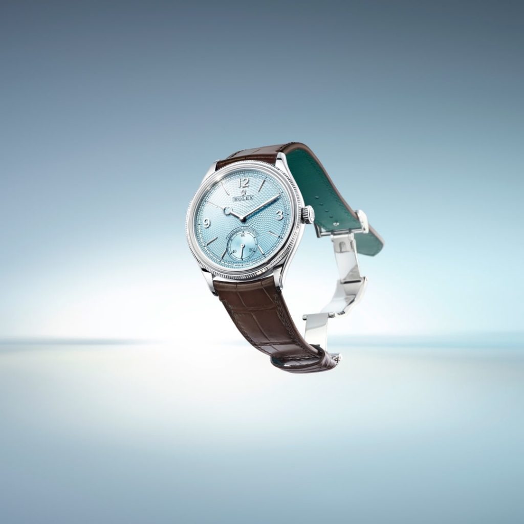 L’ultimo orologio degno di nota della maison Ginevrina, almeno per il momento, è l’elegante del catalogo: il 1908. In questa nuova versione in platino con quadrante blu ghiaccio e un motivo a grana di riso realizzato mediante guillochage, l’orologio presentato l’anno scorso e che aveva sostituito il Cellini, assume una veste istituzionale. Il colore del quadrante, utilizzato fino ad oggi solo sui modelli in platino, viene esaltato grazie alla sua lavorazione e anche grazie al rosone che partendo dal contatore dei piccoli secondi ad ore sei diventa la massima espressione di tecnica su un quadrante nel catalogo di Rolex.