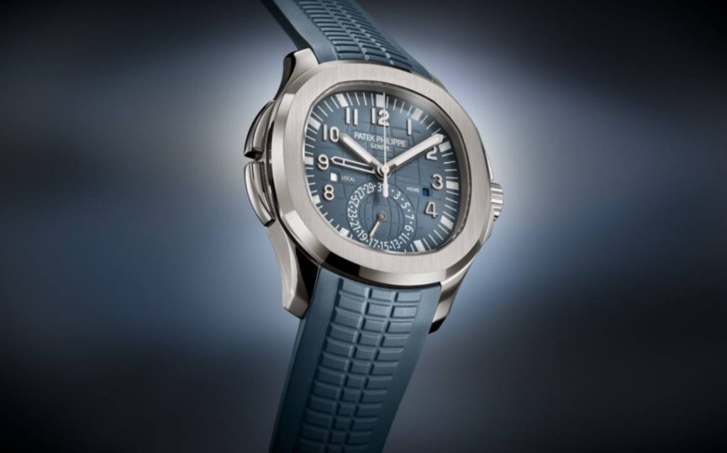 Altre novità attese dai collezionisti, come ogni anno, sono quelle di Patek Philippe. Nel giugno del 2023 in occasione dell’esposizione tenutasi a Tokyo, Patek aveva presentato la Ref. 5330, che da oggi trova il suo posto nel catalogo. Questo orologio rappresenta la nuova generazione di Ora Universale, che grazie al nuovo calibro 240 HU-C, presenta la visualizzazione della data indicizzata sull’ora locale, cioè quella del fuso orario scelto a ore 12 e indicata dalle lancette centrali. Un’estetica come sempre molto elegante: il quadrante è reso particolare da questa lavorazione in stile carbonio con toni tenui di blu e di grigio, colori che predominano nelle nuove uscite di Patek. Infatti, ritroviamo questi colori nelle linee sportive dei Nautilus e degli Aquanaut, nello specifico sul Nautilus Cronografo Flyback (ref. 5980) e sull’Aquanaut Travel Time (ref. 5164) per la prima volta in oro bianco.