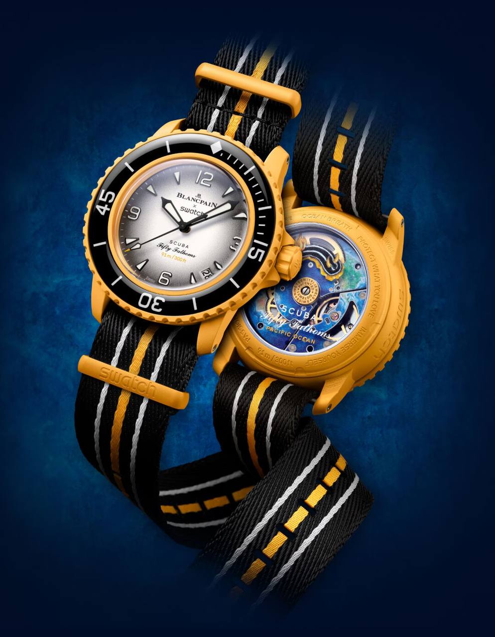 Gli orologi sono impermeabili fino a 91 metri, profondità dichiarata non a caso. Infatti, l’origine del nome Fifty Fathoms deriva dall’unità di misura Fathom (=braccio) che corrisponde a 1,8288 metri; per l’appunto il primo Fifty Fathoms di Blancpain era in grado di garantire il proprio funzionamento fino ad una profondità di 91,44 metri, proprio come il modello prodotto in collaborazione con Swatch.